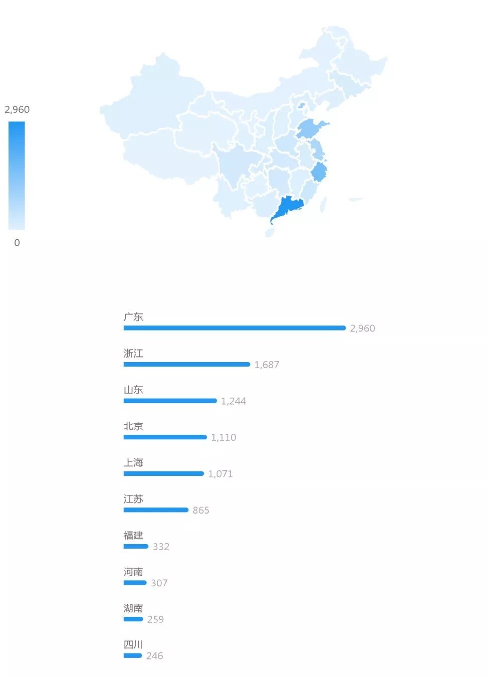 从区域分布来看,如下图所示,2009年-2017年汽车行业的知识产权与竞争纠纷主要分布在广东省、浙江省、山东省、北京市、上海市、江苏省等省市,分别达到2960件、1687件、1244件、1110件、1071件、865件。其中,广东省、浙江省、山东省,分别占比25%、14%、10%。