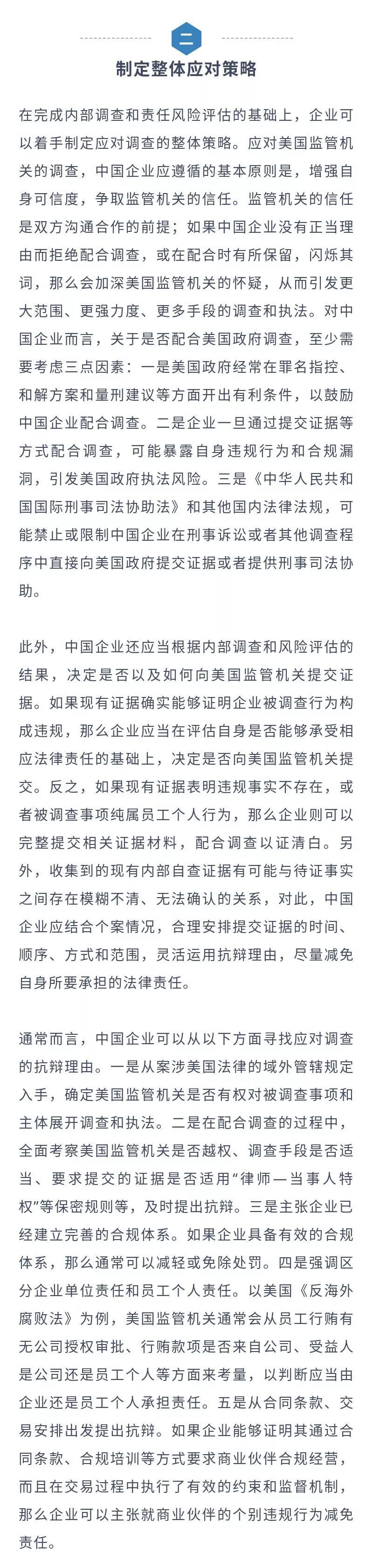 鉴于美国政府对境外经营的企业所施加的监管压力不断加大,对企业行稳致远和管理层履职安全造成了较大的法律风险和负面影响,本文将就如何应对美国政府发起的与美国法域外管辖相关的调查、执法和诉讼,提出一些分析和建议,供中国企业决策者参考。