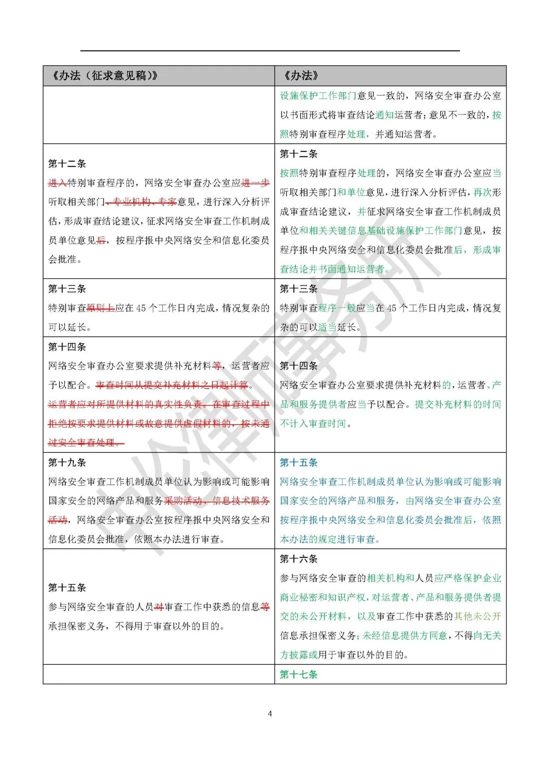 该条明确了网络安全初步审查的时间要求和审查结论征求意见要求。