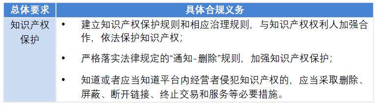 基于《电子商务法》《关于强化知识产权保护的意见》《电子商务平台知识产权保护管理》等法律法规和标准文件,笔者整理出下列主要合规要求: