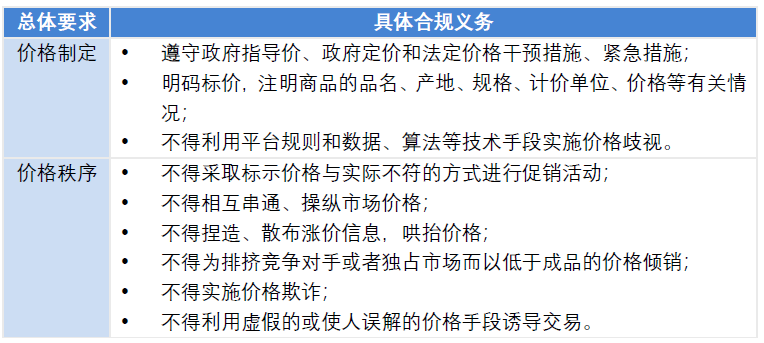 价格领域主要涉及的法律文件有:《价格法》《价格违法行为行政处罚规定》《制止牟取暴利的暂行规定》等,笔者据此整理出下列主要合规要求:
