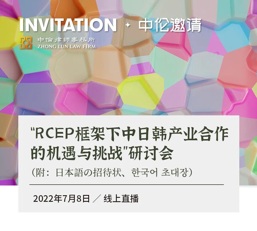 中日韩三国一衣带水,作为亚洲最大的三个经济体,经济互补性强,互为重要的经贸合作伙伴。在中日邦交正常化50周年、中韩建交30周年之际,中伦律师事务所将举办“RCEP框架下中日韩产业合作的机遇与挑战”研讨会,从而加强中日韩之间的合作与交流,共谋新发展。