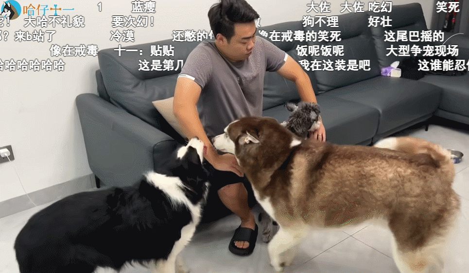 三只狗车轮战,对着UP主轮番轰炸。
