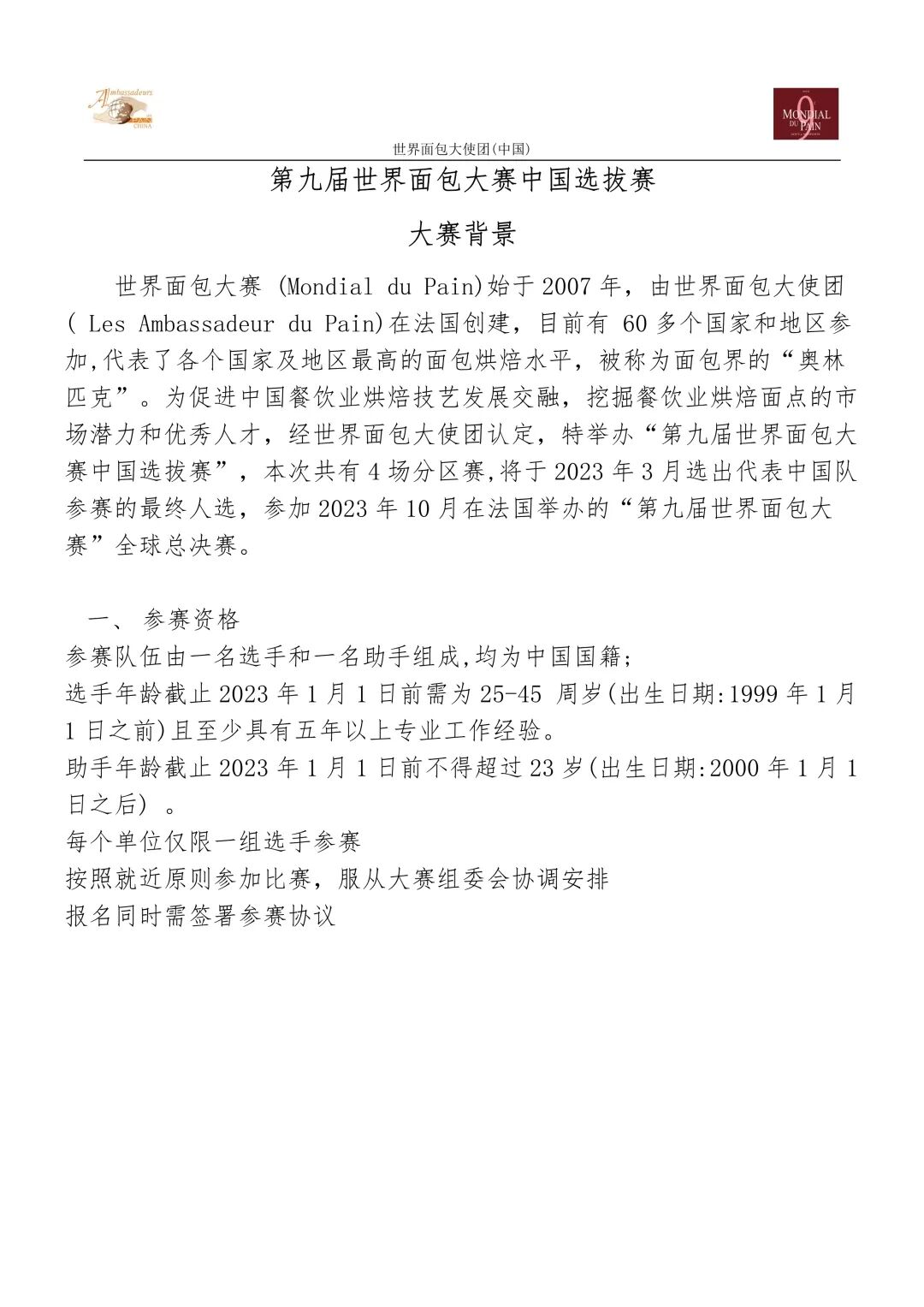 第九届世界面包大赛中国区选拔赛-分区赛技术指导文件