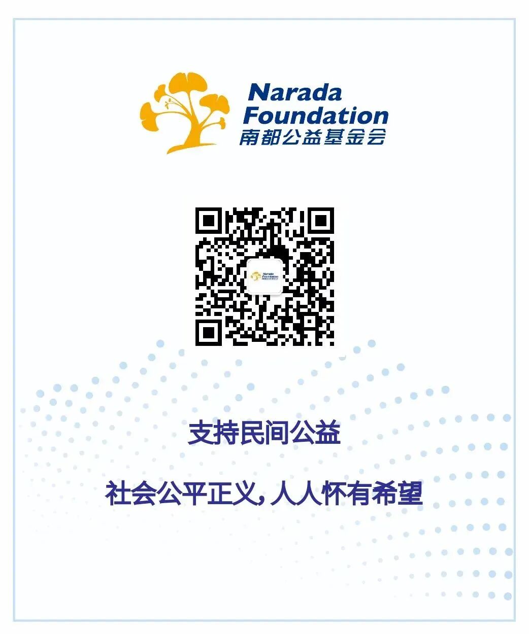 南都公益基金会,经民政部批准成立的全国性非公募基金会,成立于2007年5月,始终坚持“支持民间公益”的使命和“社会公平正义,人人怀有希望”的愿景。积极建设公益行业生态,致力于为中国公益行业发展提供公共品,通过提供资金和资源,推动优秀公益项目和公益组织发展,带动民间的社会创新。