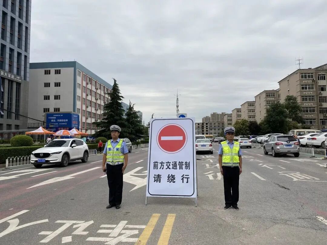 遇考点周边道路临时实行交通管制,请给予理解和配合,服从交警指挥。