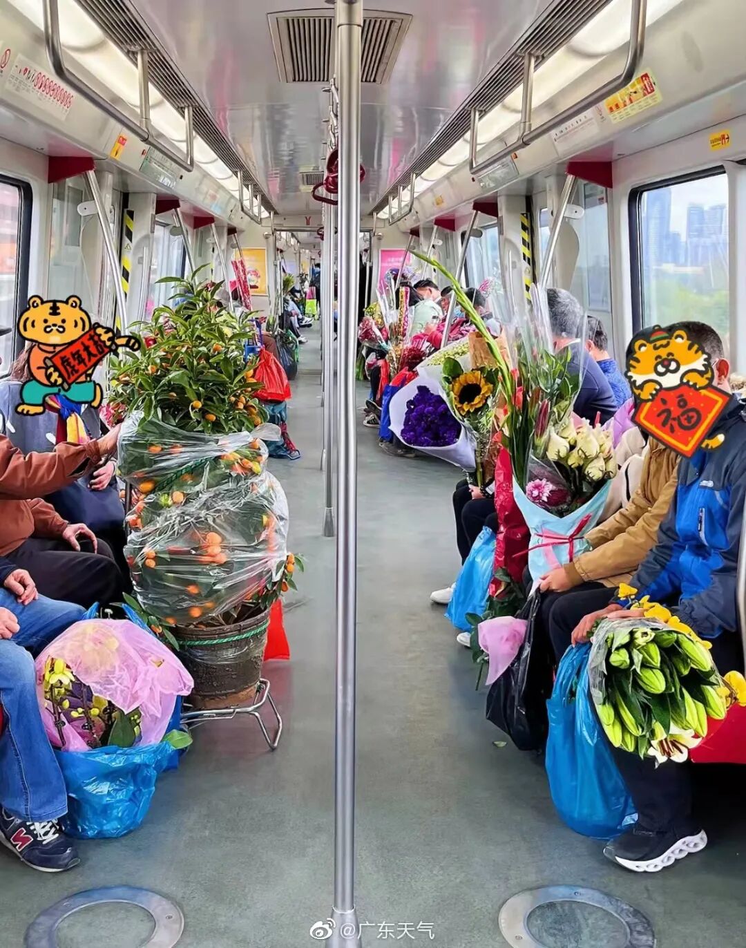 而会生活的广州人,更是仪式感满满。每年这个时候都可以坐上载满鲜花的地铁,这过年氛围一整个爱住!