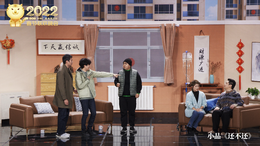 沈腾、马丽、艾伦、常远等春晚常客,则用小品《还不还》讽刺了欠钱不还的不诚信行为。沈腾饰演一个装病的老赖,为了不还同学钱,无所不用其极,弃同学多年情谊不顾,差点落得众叛亲离。“不是我们脸皮薄,是老同学情谊深”“能借给你钱的人都是最信任你的人”等台词倡导诚信做人。该节目还借机讽刺了道德绑架随礼、过度消费“元宇宙”概念等现象。“开心麻花”班底在整段演出中,高频输出笑点,从而让《还不还》成为目前最受网友追捧的春晚小品,“还得是沈腾马丽”登上了微博热搜榜。有网友“表扬”开心麻花“你们拯救了我的笑点”。![]()