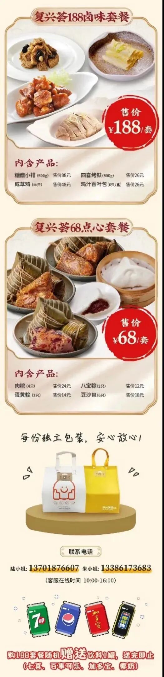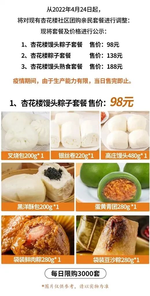 上海市民的“心头好”杏花楼也陆续推出了居家安心团购套餐,团购套餐包括馒头粽子套餐、粽子套餐、馒头熟食套餐。