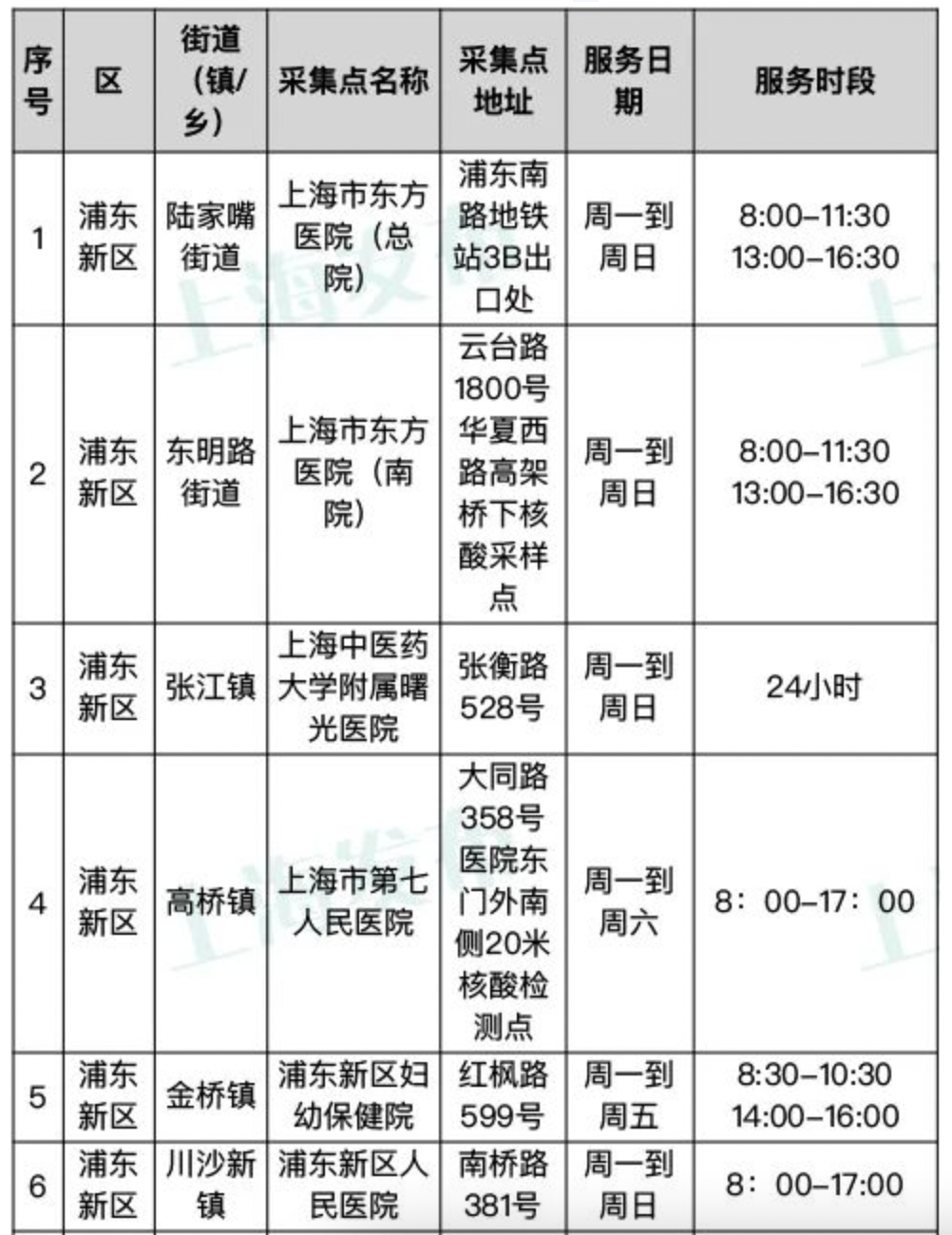 本市常态化核酸采样点