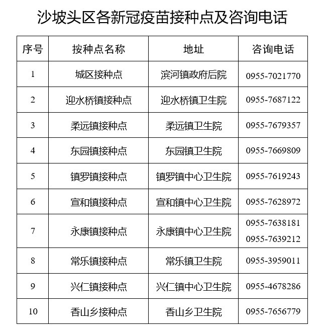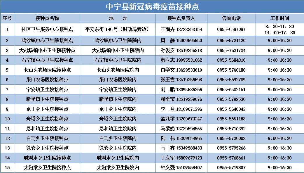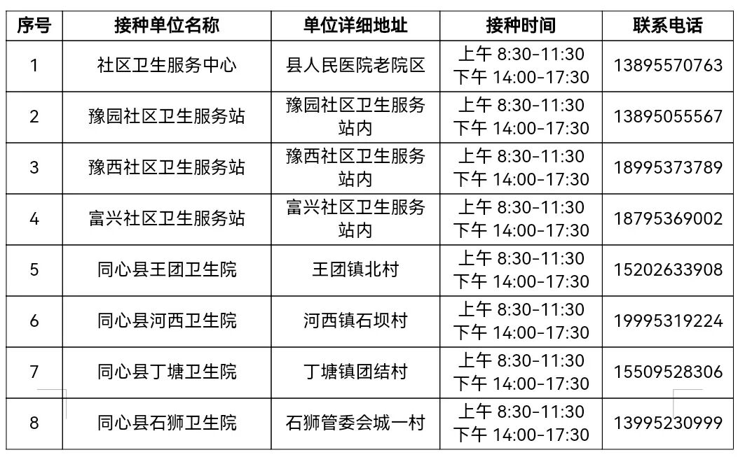 同心县新冠病毒疫苗接种门诊联系方式及地址
