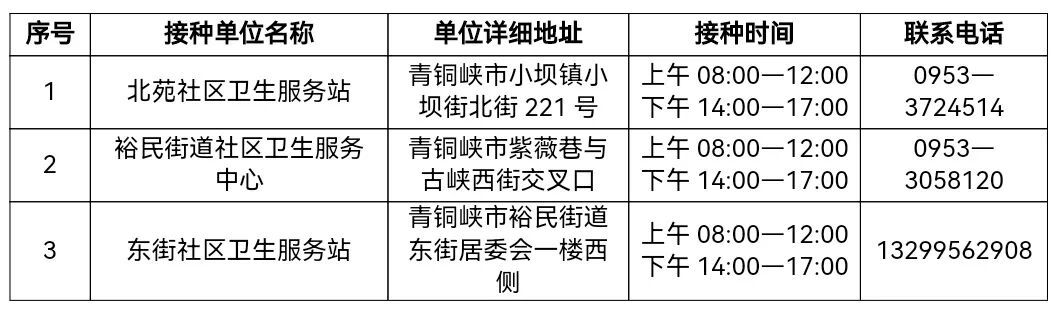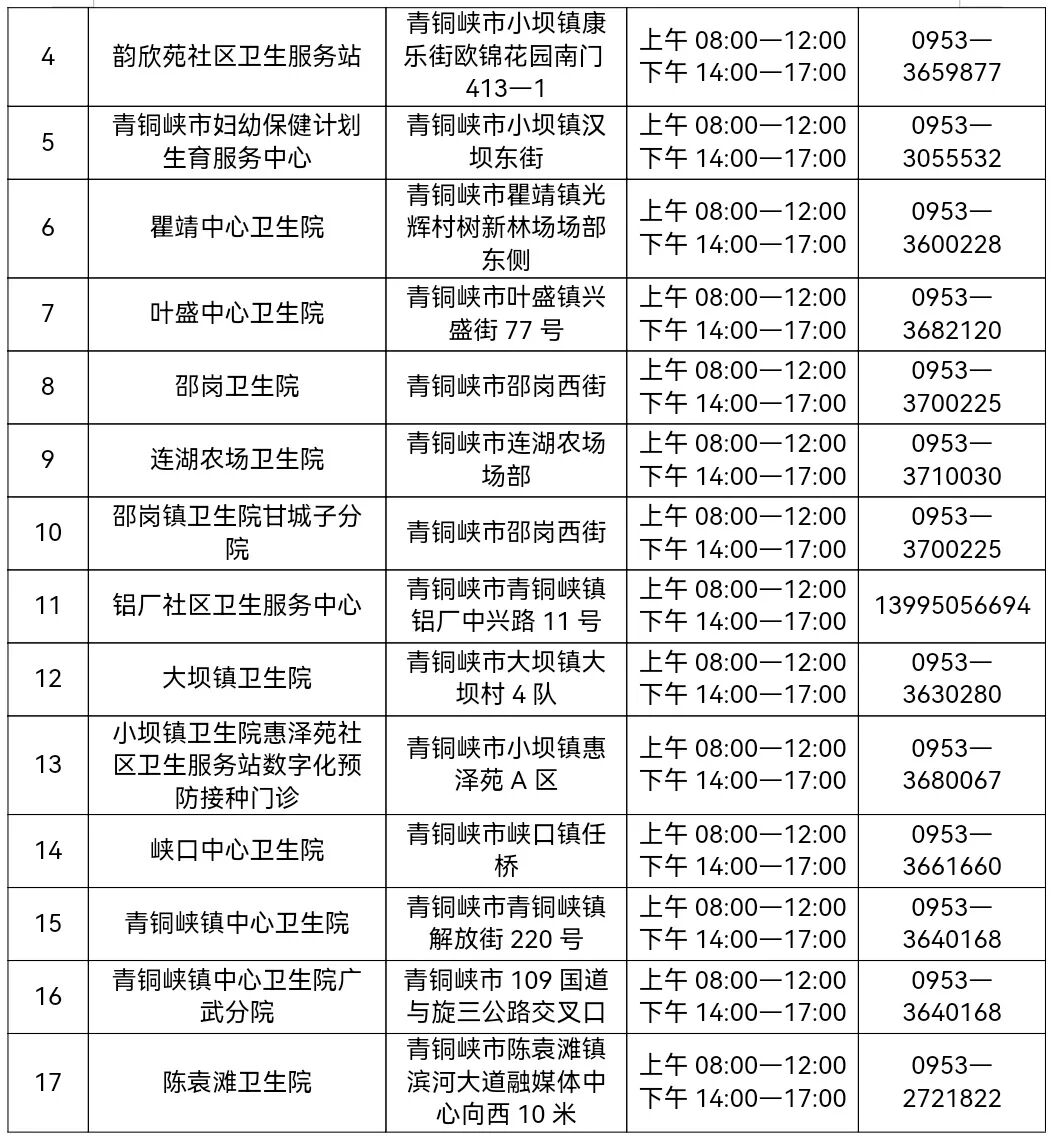 青铜峡市新冠病毒疫苗接种门诊联系方式及地址