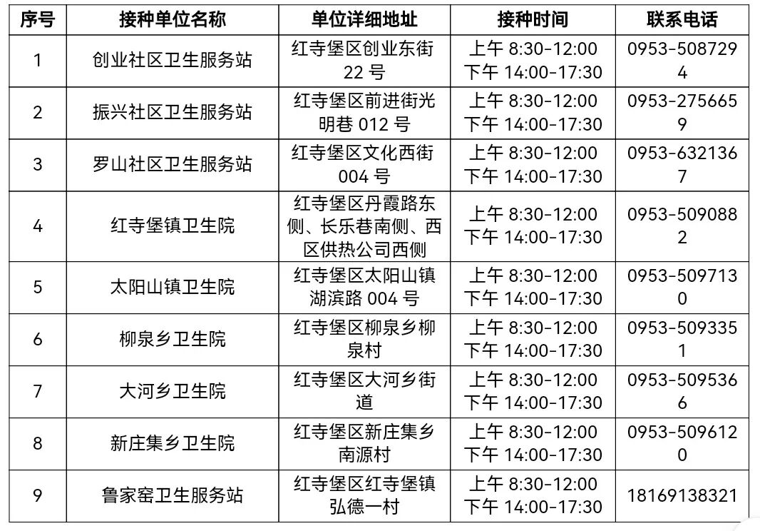 红寺堡区新冠病毒疫苗接种门诊联系方式及地址