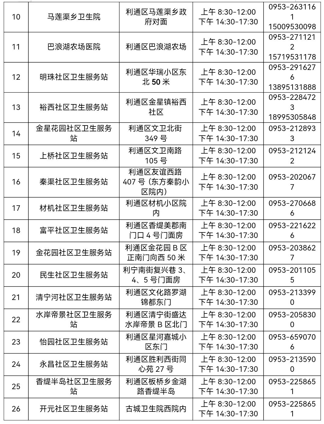 利通区新冠病毒疫苗接种门诊联系方式及地址