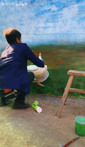 从3月17日在B站发布第一条视频至今,涨粉超过200万,最高播放量破千万,他成为了人们口中的“男版李子柒”和“唯一超过张同学”的人。甚至有网友已经将其视为人生楷模或择偶标准。每每点开他的视频,我们脑海中都会不约而同地出现这样的词:当下的互联网,还能让周杰伦“上班”的,除了刘畊宏,就是帅农鸟哥了。起初,千万网友都是被“谁会拒绝一首免费的稻香呢~”这样的标题诱惑着,点进了帅农鸟哥的视频。开头,你以为这只是一个偶尔撩发耍帅的人在自家院子里糊腻子的日常,只不过是镜头切得有点华丽。他看似没有什么章法的绘画技巧,细看下来还涵盖且不仅限于“以草生草”与“农村版这就是街舞”等招式。