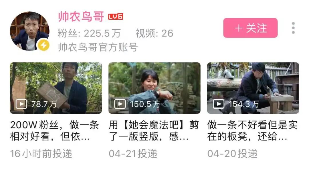 他们或多或少都“继承”了华农兄弟等初代博主的真实与鲜活,“借鉴”了李子柒对田园美学的诠释,但仍然要通过独具风格的镜头、剪辑、专属BGM和招牌动作,来让自己成为梗、成为记忆点、成为观众会买账的优质自媒体产品。“魔法”不就是这么来的?像帅农鸟哥5-7分钟的视频中,网友们往往能统计出120-160个运镜。反过来,当这些农村短视频不再单纯地聚焦于记录生活,牟取流量,以及带货时,我们又能从中看到什么呢?鸟哥:视频之所以火,帅是很重要的原因。