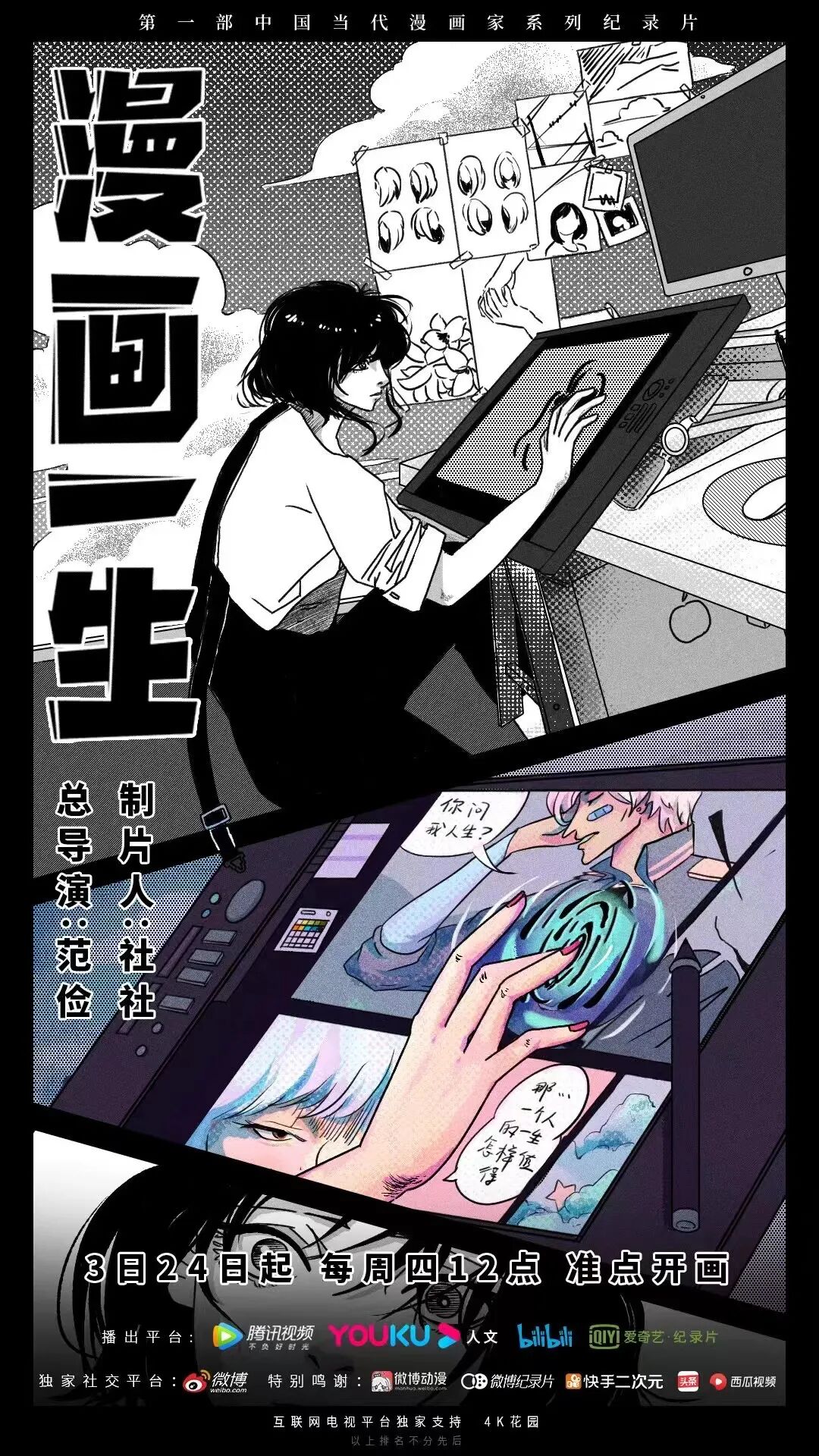 这是第一部关于中国当代漫画家生态的纪录片。/《漫画一生》纪录片海报