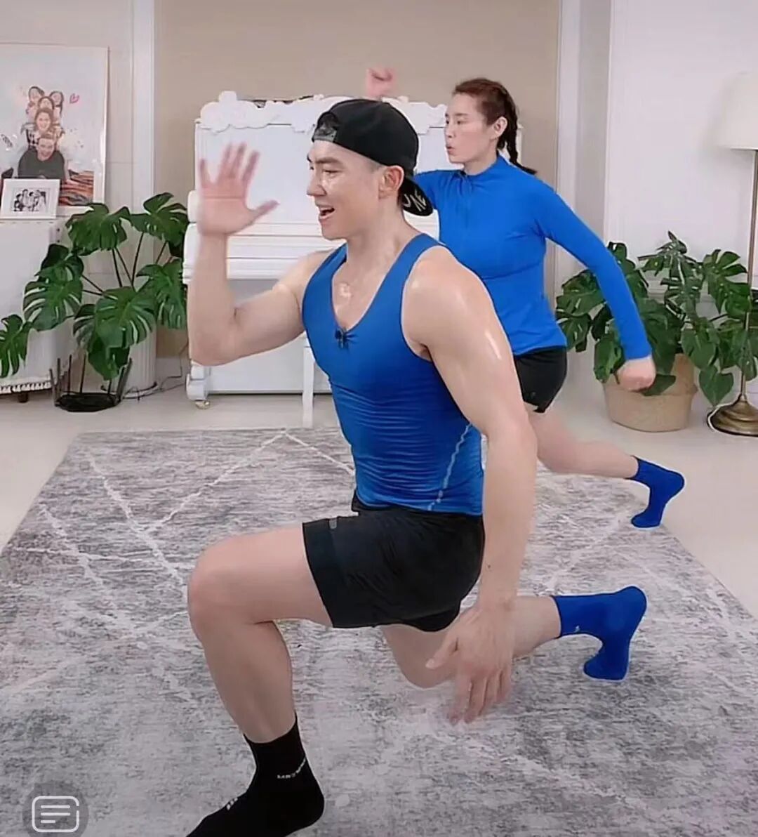 而现在,他在直播间里活力满满地跳着健身操,一个正踢腿,一个反踢腿,一边催促他的线上学员们:“跟着周杰伦的音乐我们一起动起来,come on!一起燃脂,燃烧你的卡路里!”