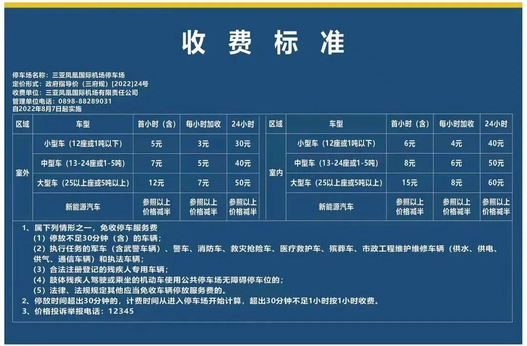 三亚凤凰国际机场停车场收费标准有所调整。