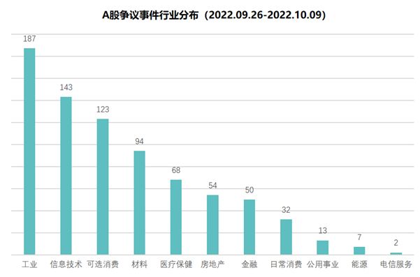 工业、信息技术、可选消费、材料行业是争议事件高发行业,四个行业所发生的争议事件占整个A股市场争议事件数量比重达70.76%。主要涉及问题包括股东减持、高管异动、高管违法、担保过多、股份质押异常、关联企业问题等(注:行业分类为Wind一级)。