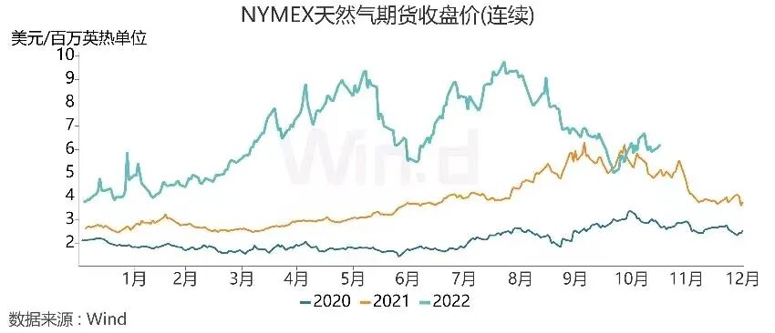 2022年11月16日,IPE英国天然气期货收盘价为257.24便士/色姆,环比下跌11.9%。NYMEX天然气期货收盘价为6.2美元/百万英热单位,环比上涨0.65%。二者均高于去年同期价格。10月18日-10月27日期间,IPE英国天然气期货收盘价几度低于去年同期价格;10月21日-10月28日期间,NYMEX天然气期货收盘价低于去年同期价格。10月中下旬,部分欧美地区天然气现货价一度跌至负值。
