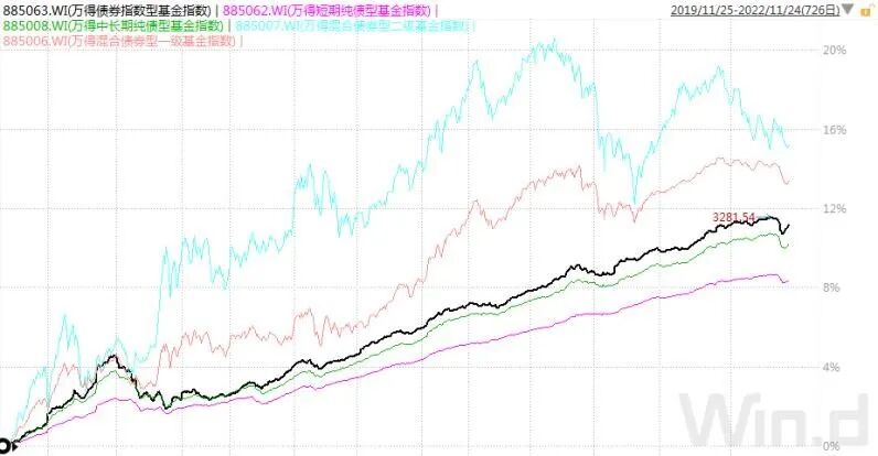 从各类债基近三年的表现看,风险排名依次为:中长期纯债基金,短期纯债基金、混合型一级债基、混合型二级债基;收益排名正好反过来。这也符合风险、收益成正比的定理。