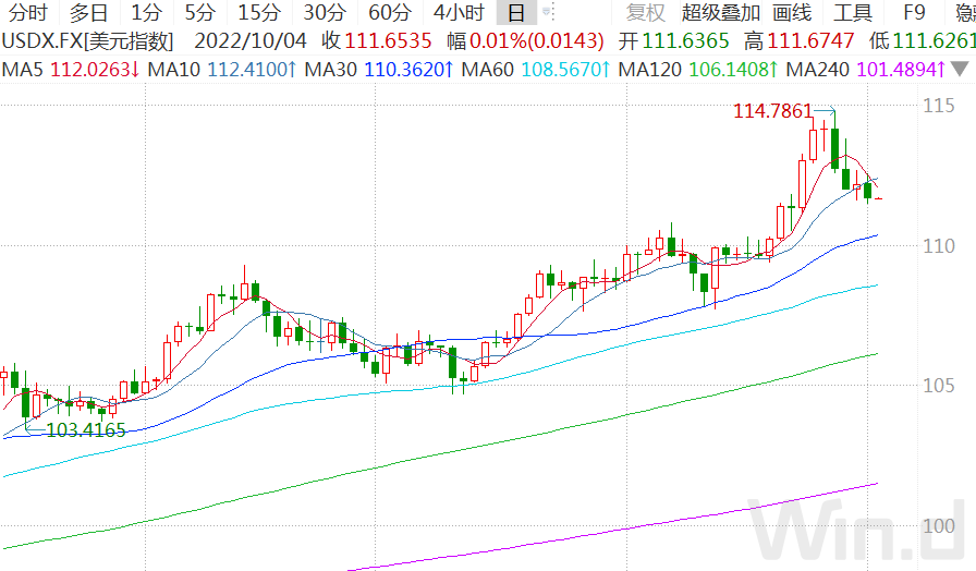 周一(10月3日),纽约尾盘,美元指数跌0.45%报111.64,非美货币多数上涨,欧元兑美元涨0.21%报0.9826,英镑兑美元涨0.43%报1.1167,澳元兑美元涨1.7%报0.6510,美元兑加元跌1.53%报1.3620,美元兑瑞郎涨0.5%报0.9918,离岸人民币兑美元涨391个基点报7.1022。