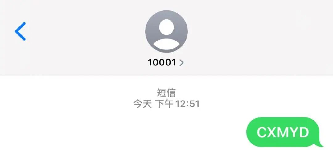 方法四:发送短信CXMYD到所属运营商(电信10001/移动10086/联通10010)进行查询。