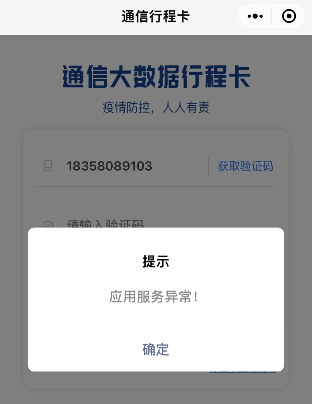 “行程卡”小程序服务器异常怎么办?