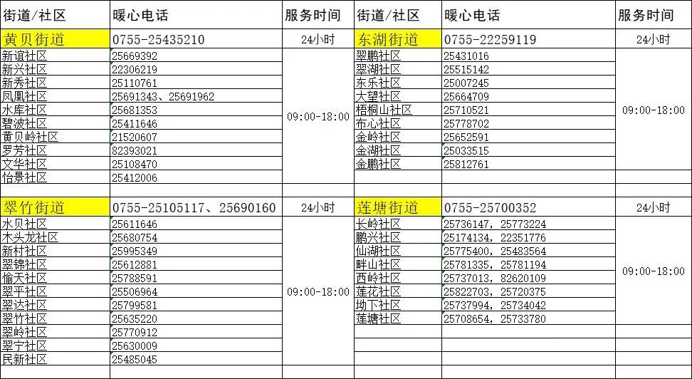 附各街道社区暖心服务热线
