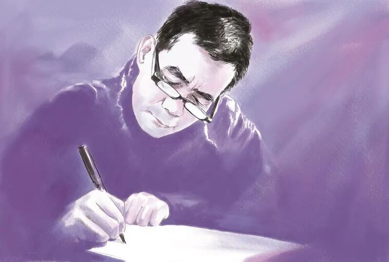 杨争光伏在书案上,头、颈、双肩两臂形成惯常的姿势和角度,右手捏着笔在稿纸上微微移动,左手三根手指按住稿纸,另外两根手指把一只过滤烟嘴紧紧扣在手心,是一种无意识。顺利的时候,他会几个小时地保持这个姿势。