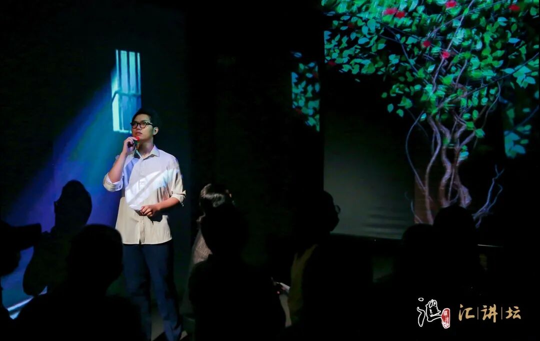 首先登台的嘉宾是上海戏剧学院导演系教师姜涛,他和观众分享了他在徐汇区做的两个戏《那年桃花》和《前行之歌》的创作心得。比如怎样感受实景,怎样把红色主题场馆与戏剧艺术融合。还给大家还原了剧中人物——聂耳的真实一面。幽默、顽皮、和善的进步青年,除了我们熟知的是一个作曲家,还是演说家、演员,甚至是健身达人。