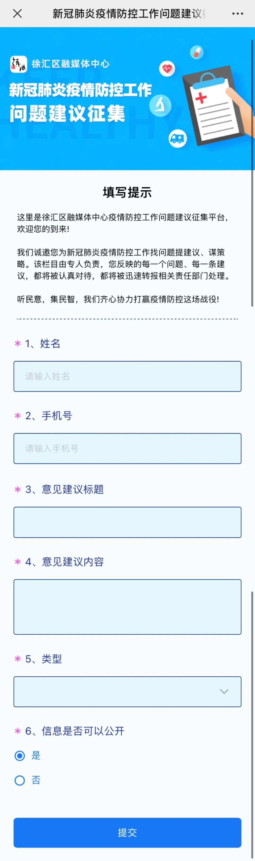 新冠肺炎疫情防控工作问题建议征集