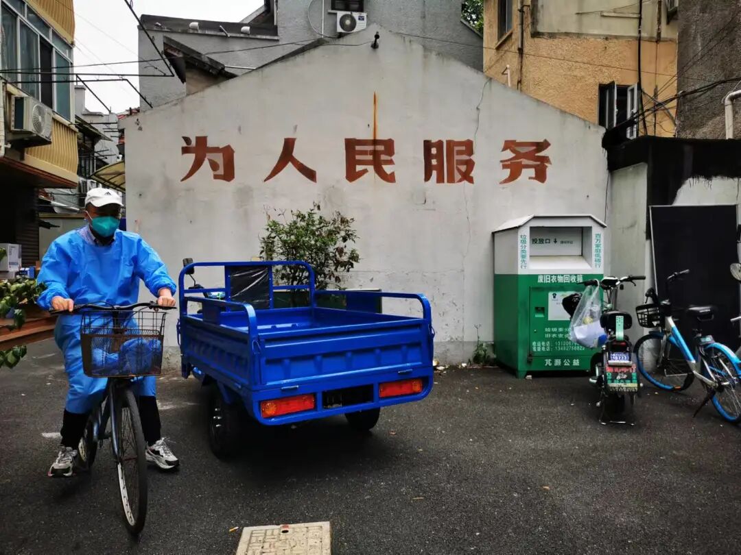 有段时间因为隔离人手少,老年餐没人配送到户,只能集中送到居委,再由居委干部一一给老人送上门。我就骑个自行车给自己块里的老人配送好,让老人及时吃上,那时比较艰苦,停不下来,大概持续了两、三个星期吧。