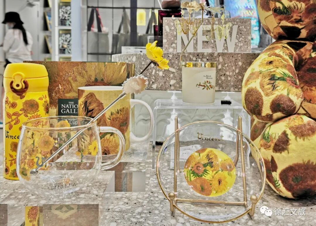 店内文创商品琳琅满目,安德森猫青铜像系列衍生产品、“罗塞塔石碑”香薰、穆夏元素玻璃杯、梵高向日葵系列茶具、蒂普的老虎系列透明包……N款热门文创商品在这里聚集,等你来pick!