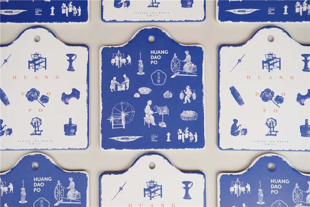 以“衣被天下”的女纺织家黄道婆为灵感,将棉纺织技艺附于陶瓷隔热垫之上。隔热垫底衬软木防滑材质防水防潮,表面陶瓷蓝白相映,置于桌上,即可点亮一方空间。