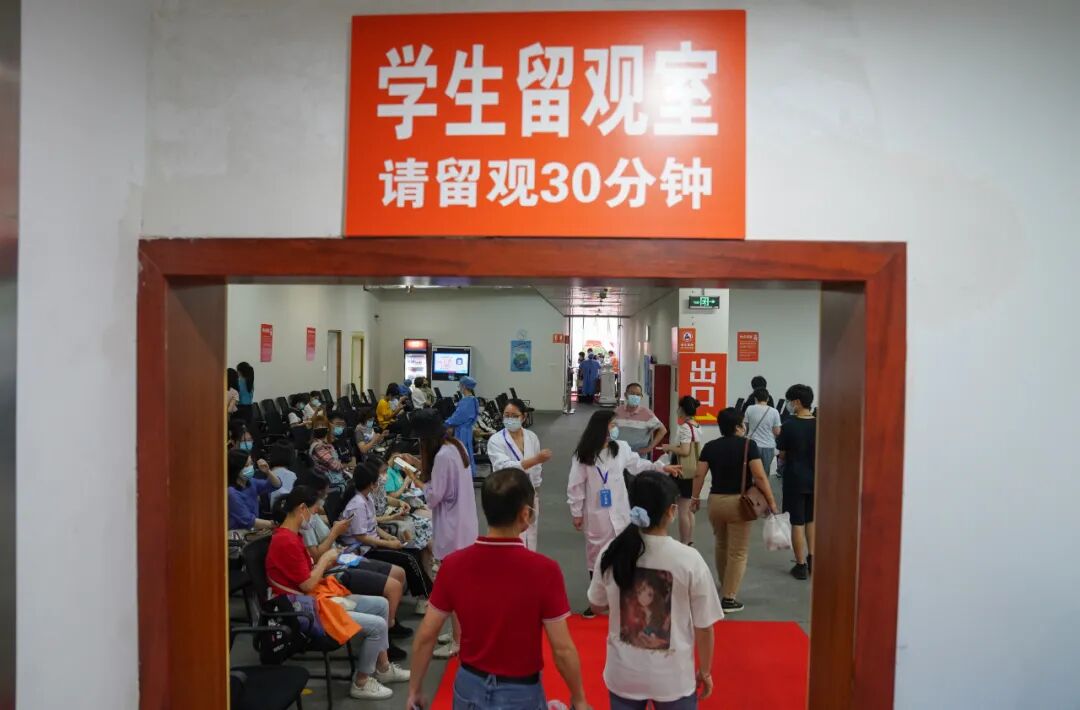 一早,尽管雨势不断,但三江路疫苗接种点的各项工作有条不紊开展。考虑天气及瞬时人流聚集等原因,现场将成人群体和学生接种人群动线接种流程优化区分,设置学生人群单向通道进入接种点,开放三楼整体活动区域作为“蓄水池”,让学生在室内等候及预检时,尽可能地减少楼宇内的人群聚集。此次疫苗接种坚持“安全第一”,严格把握接种禁忌症,针对适龄学生人群,严格落实接种前健康问询等相关要求,在预检室各种询问细致到位,而需要经过医生评估符合接种条件后才能实施接种,消除了学生和家长的疑虑。