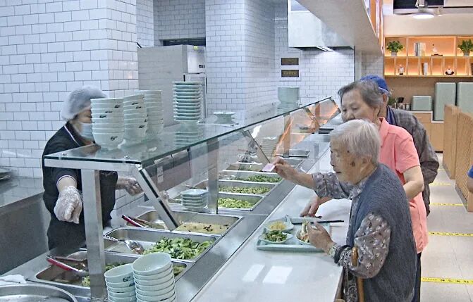 对外营业的社区食堂为居民就餐提供了方便。红烧大排、清蒸黄鱼、咖喱牛腩、青椒炒蛋、土豆丝……有荤有素,菜色丰富,尤其受到居民区老年人的青睐。在这里,60岁以上老人用餐能享受9折,75岁以上老人能够有个85折优惠。对于不方便开火仓的老人来说,在小区里就能解决早午餐。午餐时间,老人们正吃得津津有味,“走过来很方便的,没多少路,今天的菜也很好,对胃口,味道也好。”老人说。