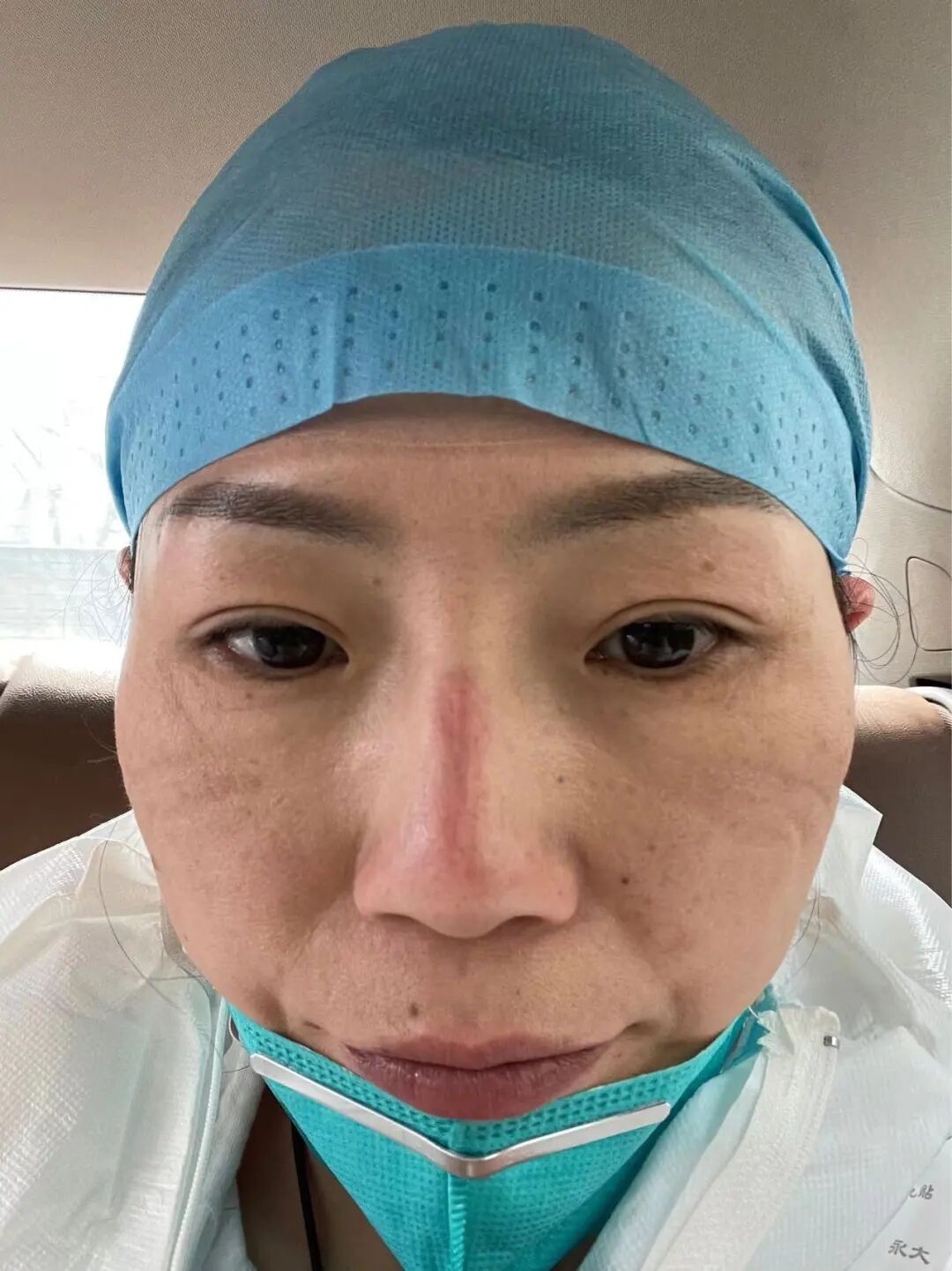 刘华脸上被口罩勒出的痕迹