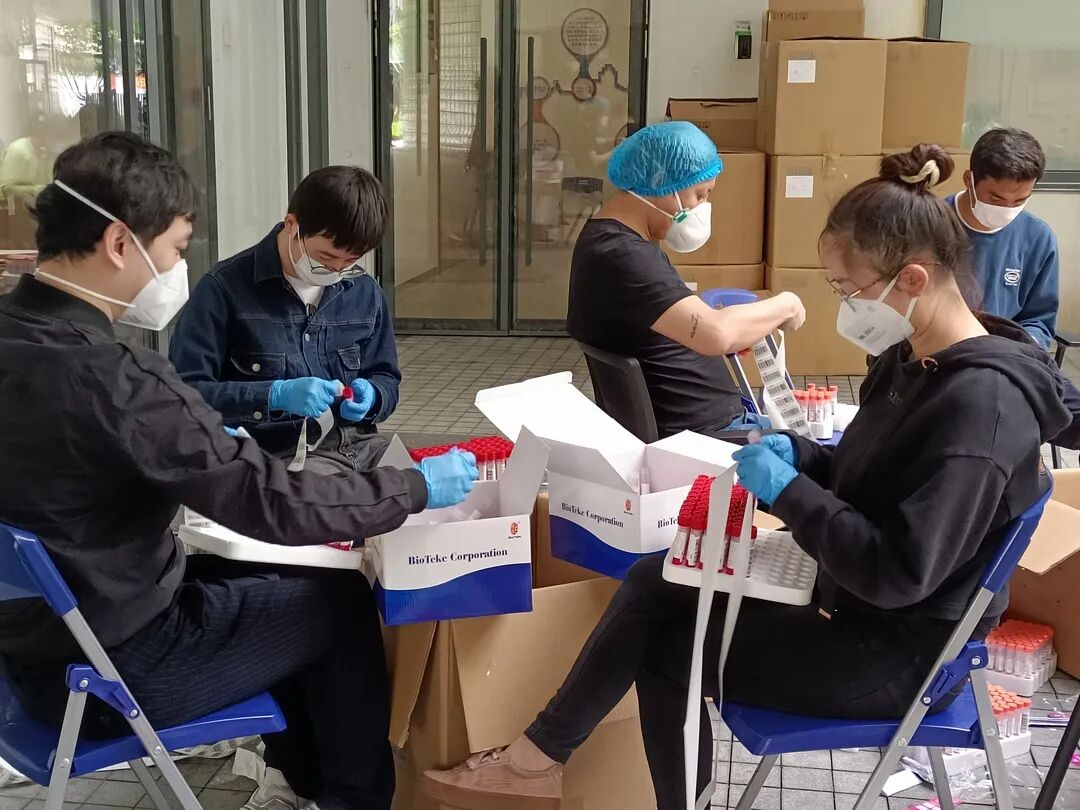 在凌云街道的下沉干部志愿者群组中,一条紧急任务被发放:目前需要人员参与核酸试管贴码工作。3分钟不到,任务所需的10多位志愿者名额就被一抢而空,大家迅速在工作群中“接龙报名”,积极踊跃。