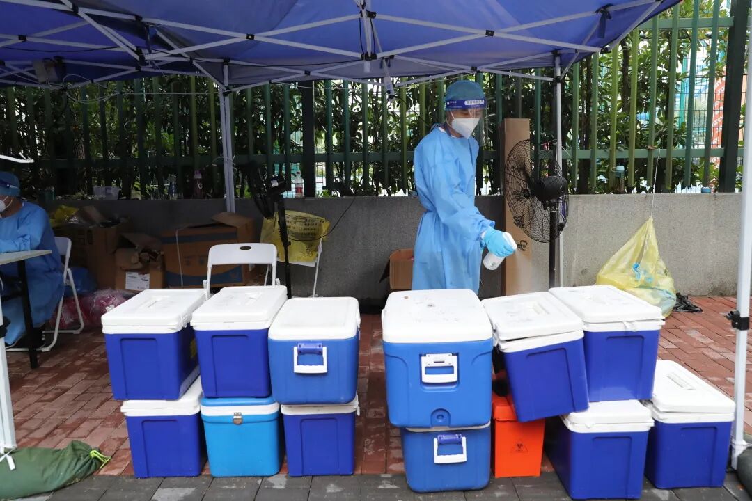 在日常的核酸检测送样过程中,区里派的专车司机团队、转运志愿者、第三方点样员密切协作,一环接一环,让检测速度跑起来。前20分钟样本在“收样车”上,中间40分钟跟着“样本转运车”在高速上疾驶,后面6小时样本则进入位于奉贤的实验室被检测。“收样车”和“样本转运车”均是一小时一发车,要保证每根管子在采样亭逗留不超过40分钟。