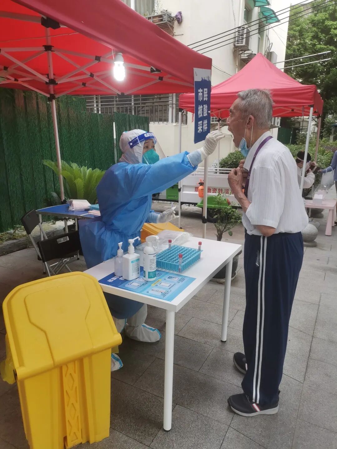 “您好,可以往前走了。”这是龙山新村志愿者徐勇根每天最常说的一句话。小区里设置核酸采样点以来,他和“小伙伴”配合默契,采样有序又流畅,让居民体验感满分!