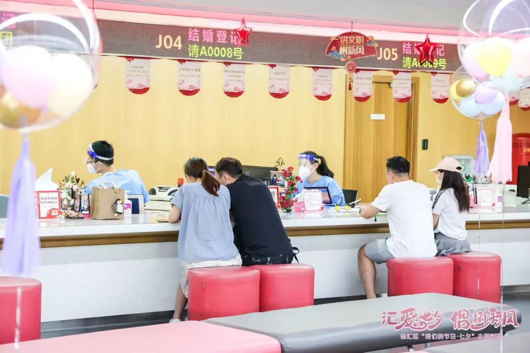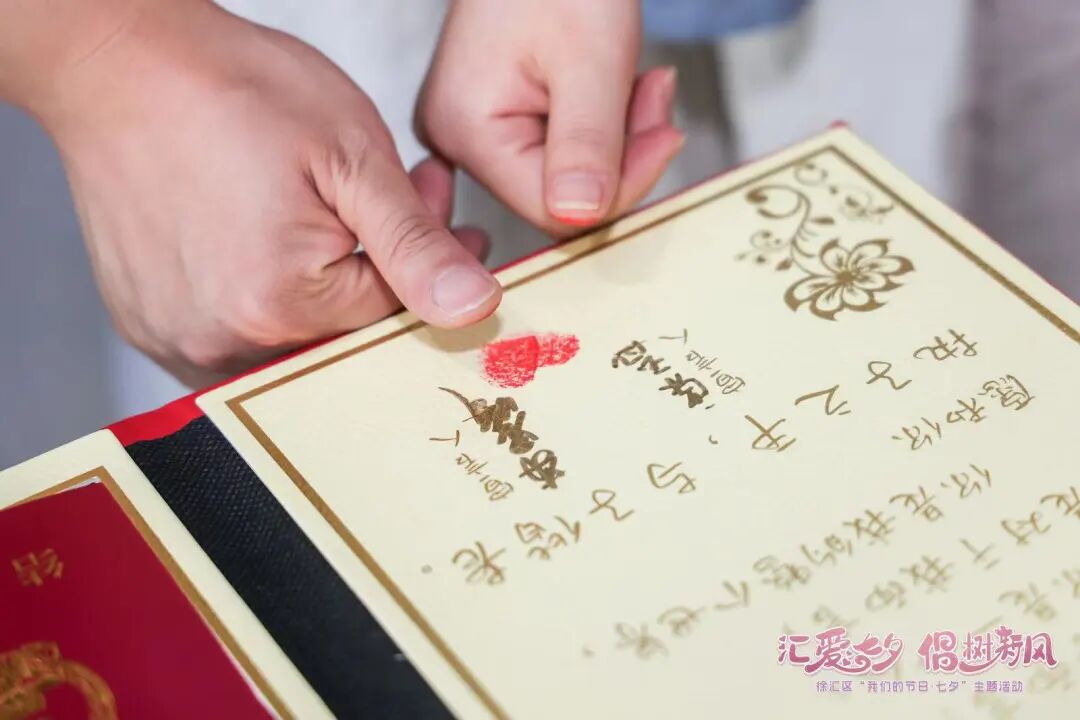 今天,为了满足广大人民群众对美满婚姻的期盼与追求,徐汇区婚姻收养登记中心在严格落实疫情防控的前提下,特为登记新人精心组织了一场“汇爱七夕、倡树新风”——“我们的节日·七夕”主题活动,在积极推进婚俗文化与民俗文化深度融合的同时,引导新人树立正确的婚姻观、积极参与新时代家庭文明建设。