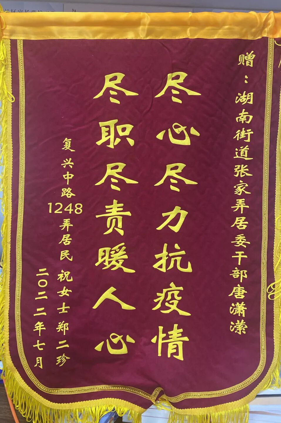 居民赠送的锦旗
