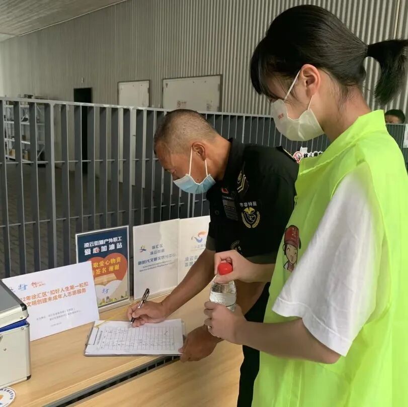 除此之外,由于近期连续的极端高温天气,像环卫工人这样的户外工作者工作强度也日益增大,为了致敬那些一直默默辛苦付出的户外工作者,凌云路街道新时代文明实践分中心还在社区公共服务中心门口设置了“户外职工爱心加油站”,加油站配备了药箱、口罩、消毒液、矿泉水等用品,用实际行动向户外工作者表示敬意和关怀。