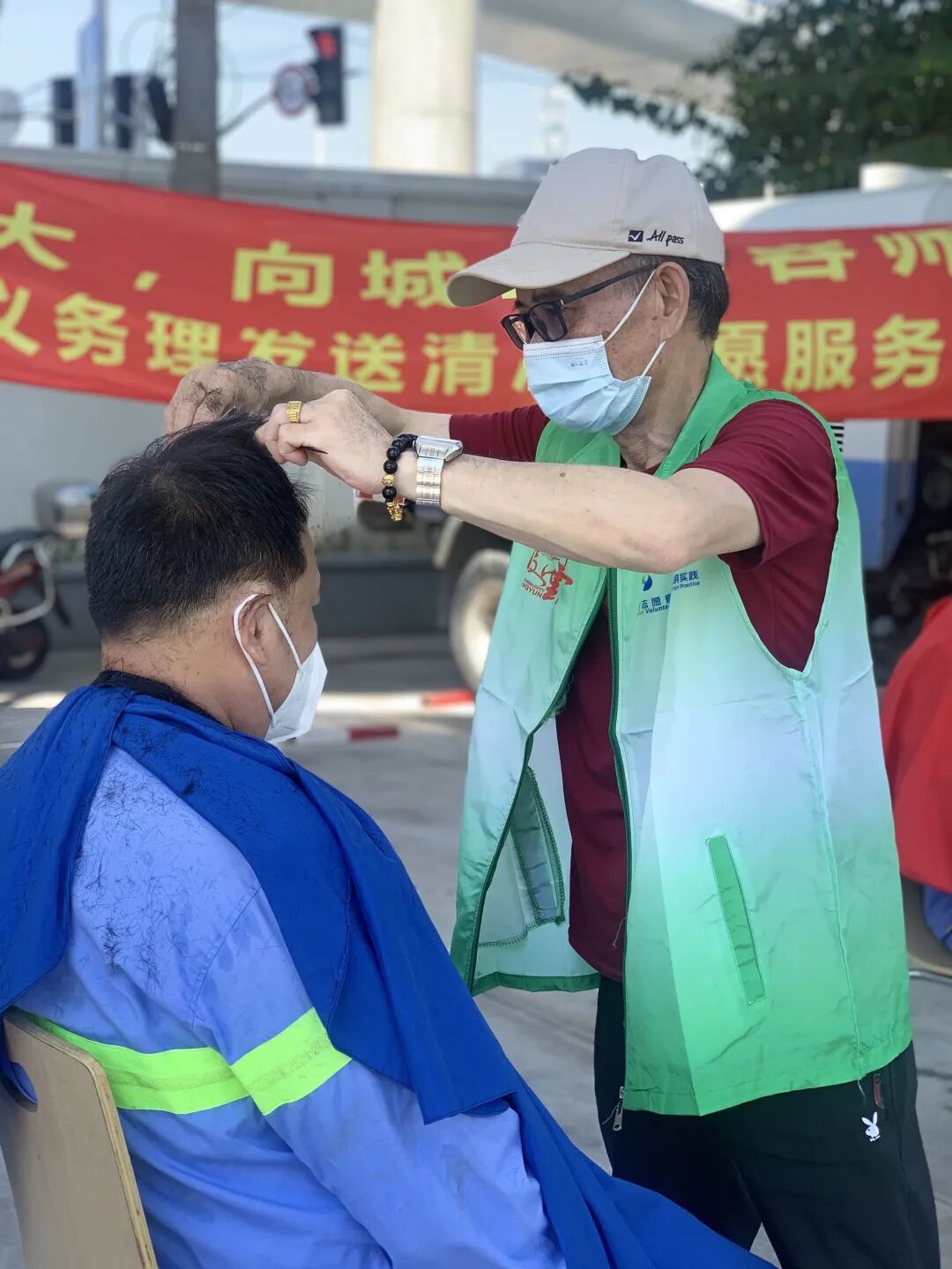 看着剪好的清爽又满意的发型,环卫工人们伸出大拇指、连声赞叹:“剪完后感觉舒服多了,人也精神了,心情也跟着美丽起来。”剪完后,凌云路街道志愿服务中心还为环卫工人们送上消暑用品。此次活动共向100多名环卫工人送去夏季清凉慰问。