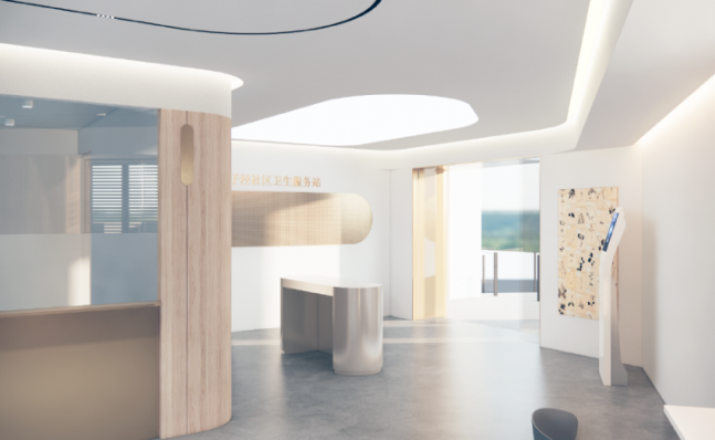 中医智能互动区设有智能中医体质辨识仪和智能中医功法镜,智能中医体质辨识仪通过采集面相、舌象和问诊填题,进行自助体质辨识,根据体质辨识结果,为居民提供膳食、茶饮、穴位、功法等调护建议;智能中医功法镜提供多种中医功法训练,通过摄像头捕捉技术实时指导居民动作是否到位。位于服务站中央的中医体质调护茶吧将为居民提供适应各自体质的特色中药茶饮,传播正确中医保健理念,做实中医健康管理。