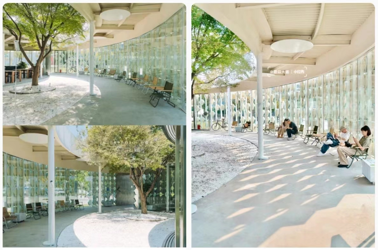 独特的建筑设计带来的光影变化是网友前来打卡的重点。在某社交平台上,许多网友用“超美阳光玻璃房”等来描述这家咖啡馆,还有不少人期待在下雨天、深秋等打卡不同景观。