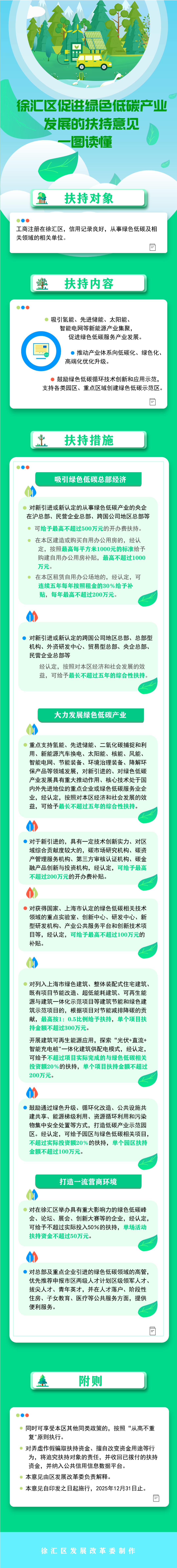 近日发布的《徐汇区促进绿色低碳产业发展的扶持意见》旨在抢抓绿色低碳新赛道布局,推动产业体系优化升级,鼓励绿色低碳试点示范,主要包括十条扶持措施。一图读懂↓