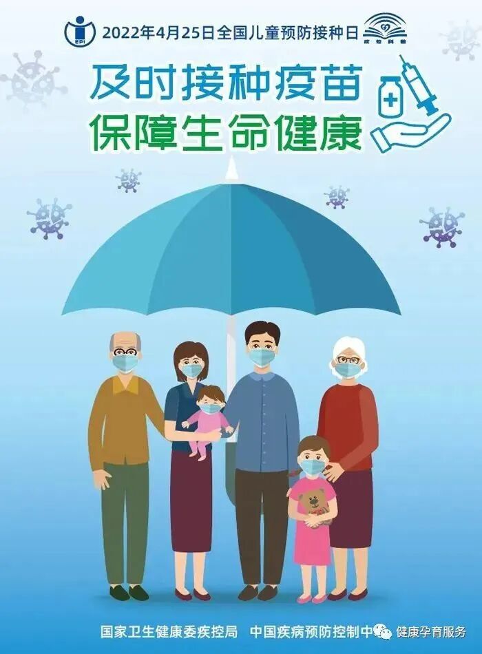 1986年6月20日,经国务院批准,由原卫生部、国家教育委员会、全国妇联、广播电影电视部、经济贸易部、国家民委联合发布通知,成立全国儿童计划免疫工作协调小组,确定每年4月25日开展全国儿童预防接种日活动。2022年活动主题为“及时接种疫苗,保障生命健康”。全国儿童预防接种日活动的开展,为提高预防接种知晓程度,保护儿童健康做出了重要贡献。